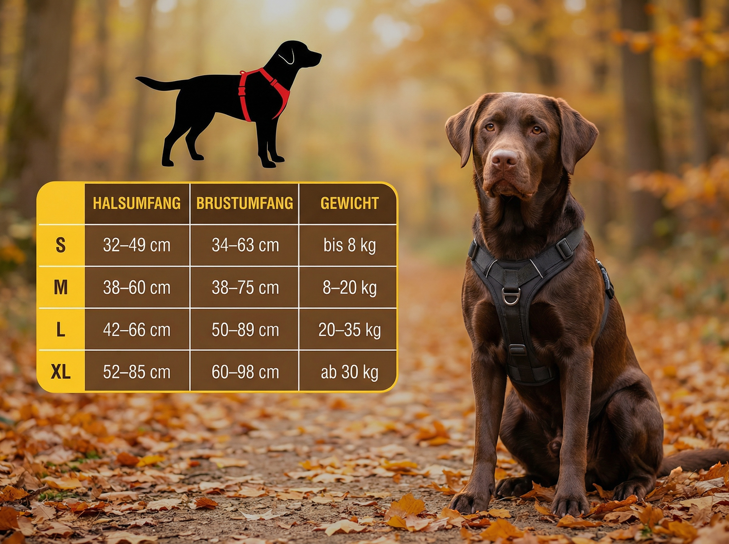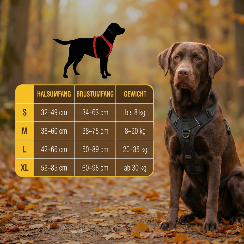 Mit einem kurzen Blick auf unsere Größentabelle findest du sofort die passende Größe für deinen Vierbeiner.