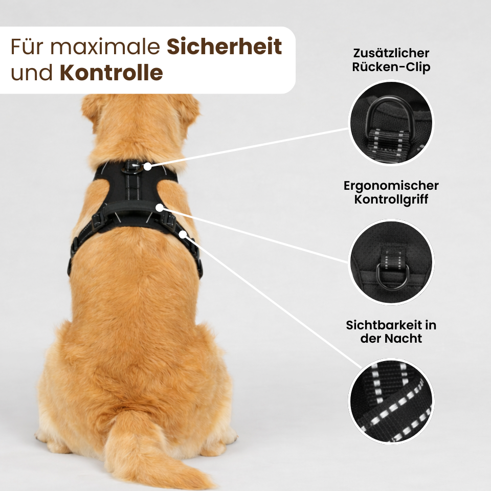 Entspanntere Spaziergänge – reduziert Ziehen an der Leine und sorgt für deutlich mehr Kontrolle bei jedem Schritt.